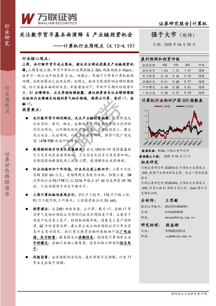 万联证券:计算机行业周观点:关注数字货币基本面演绎&产业链投资机会.pdf
