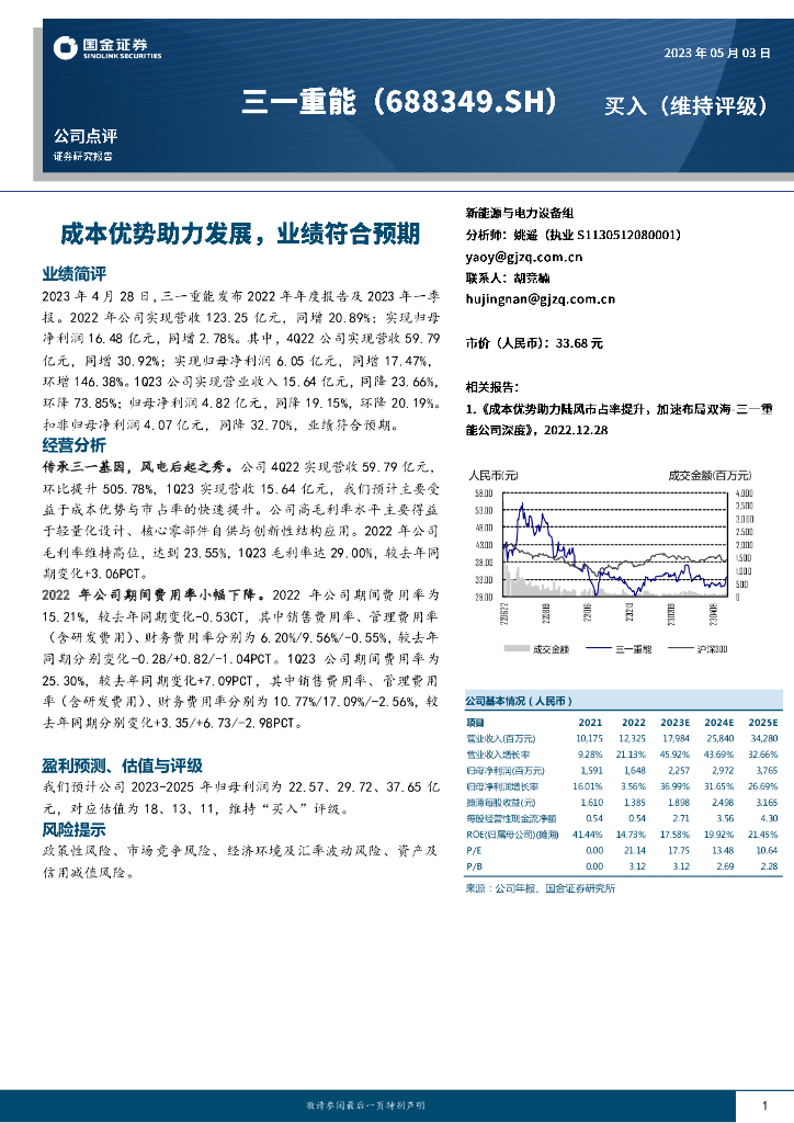 国金证券:三一重能(688349)-成本优势助力发展,业绩符合预期.pdf