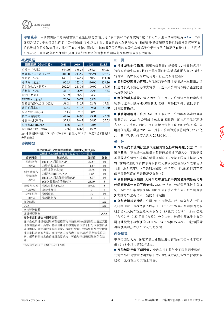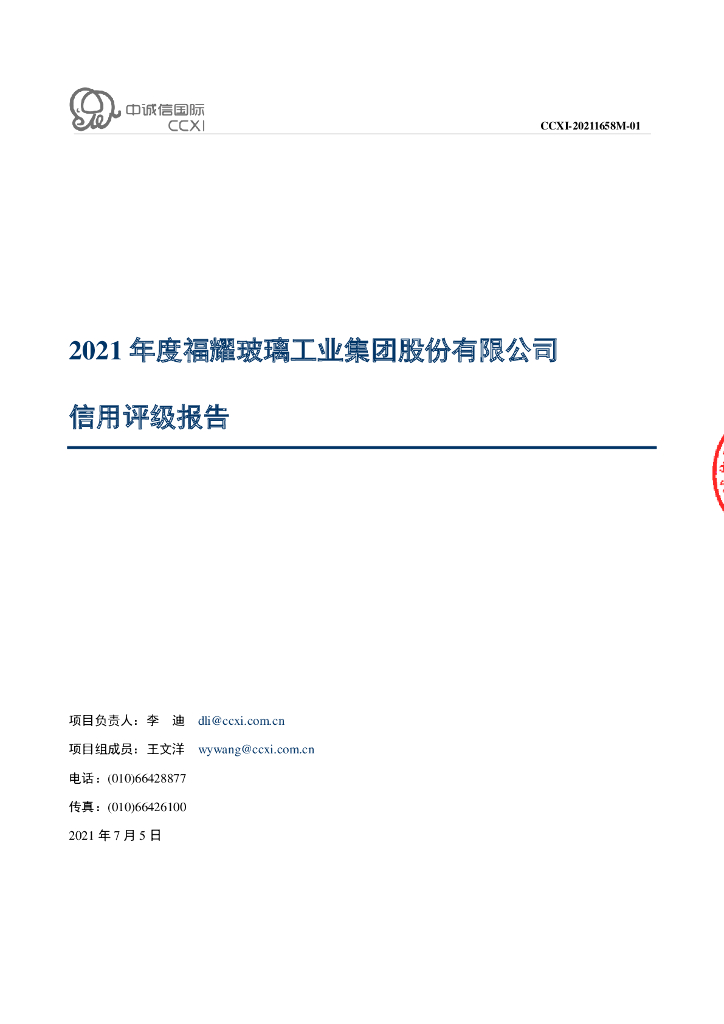 中诚信:福耀玻璃工业集团股份有限公司信用评级报告及跟踪评级安排.pdf