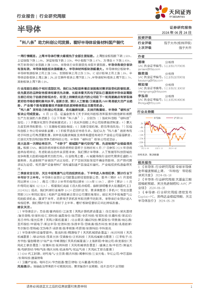 天风证券:半导体行业报告:“科八条”助力科创公司发展,看好半导体设备材料国产替代.pdf