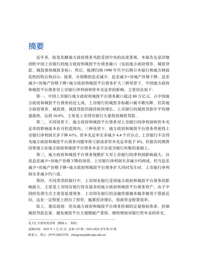 北大汇丰智库:2025年地方政府和城投平台债务对上市银行的影响测算报告.pdf