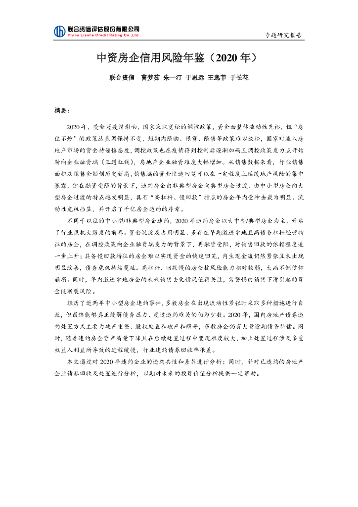 联合资信:中资房企信用风险年鉴(2020 年).pdf