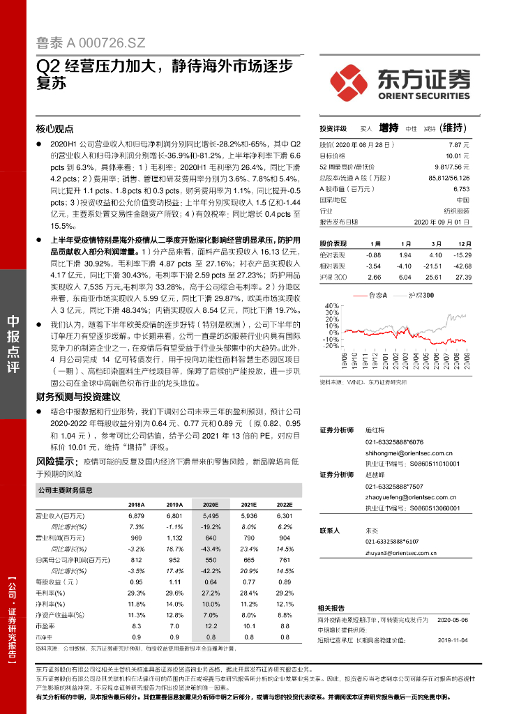 东方证券:鲁泰A(000726)-Q2经营压力加大,静待海外市场逐步复苏.pdf