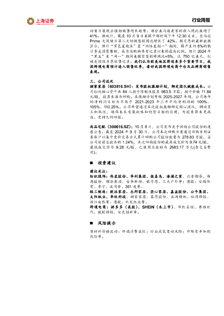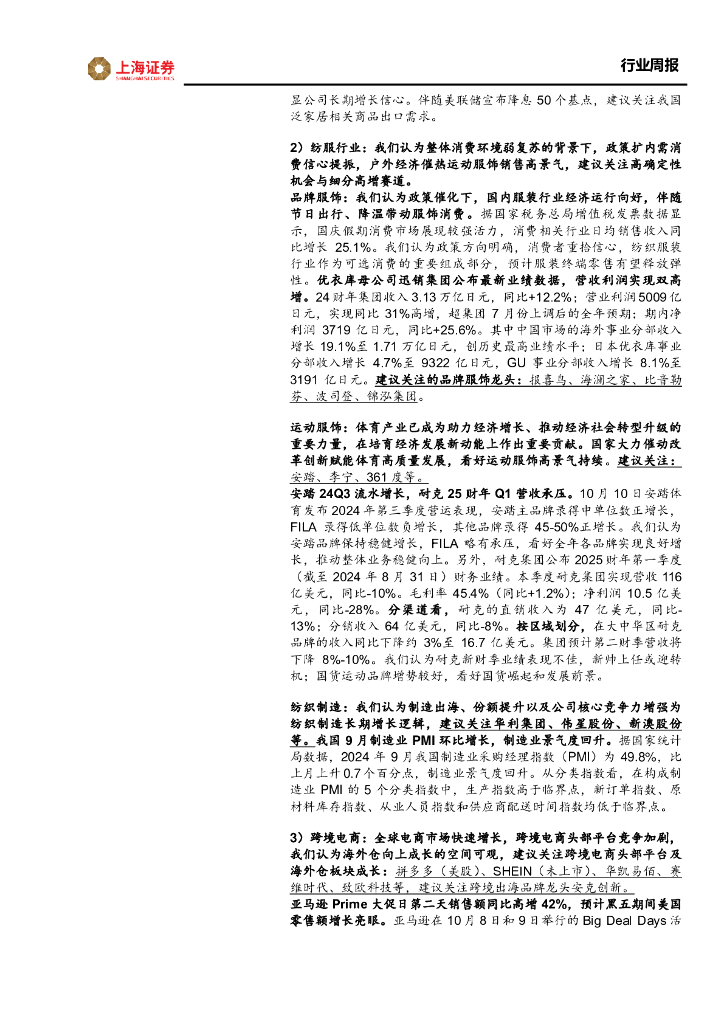 上海证券:轻工纺服行业周报:安踏24Q3流水增长,关注鞋服投资机会.pdf