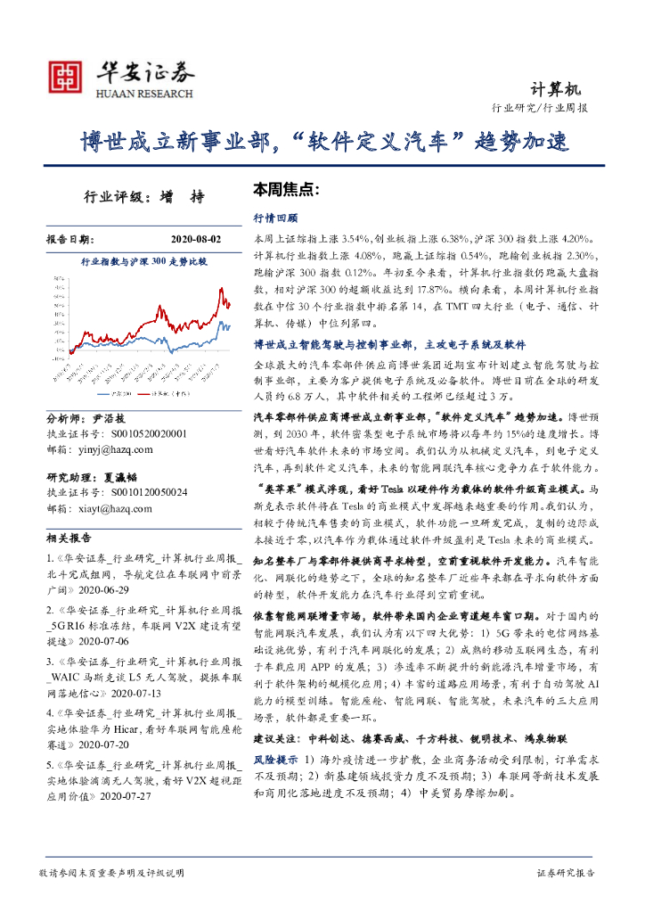 华安证券:计算机行业周报:博世成立新事业部,“软件定义汽车”趋势加速.pdf