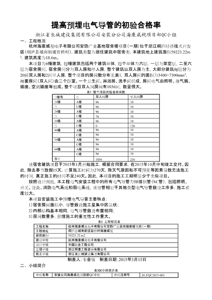 [浙江]宿舍楼预埋电气导管初验合格率QC报告.pdf