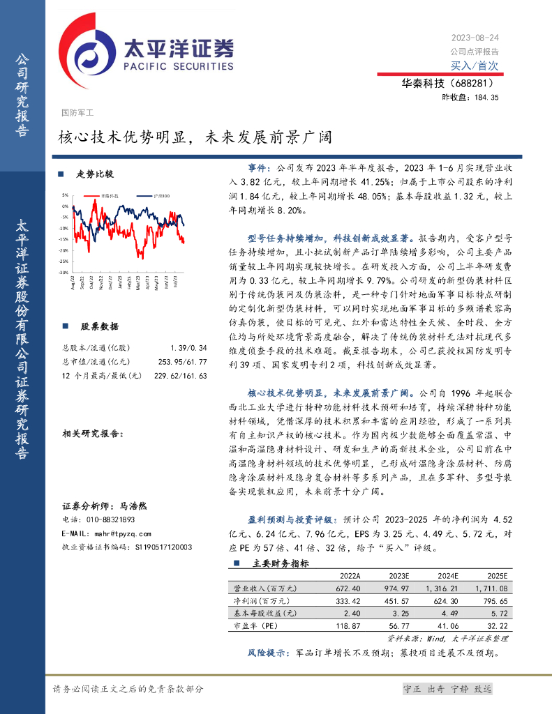 太平洋证券:华秦科技(688281)-核心技术优势明显,未来发展前景广阔.pdf