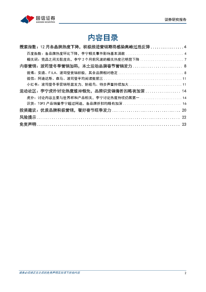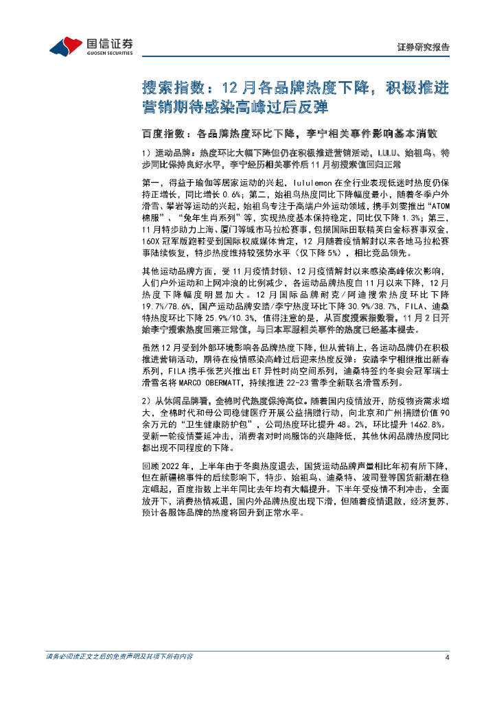 国信证券:纺织服装行业品牌力跟踪月报202212期:12月热度下降,看好疫情达峰后春节旺季发力.pdf