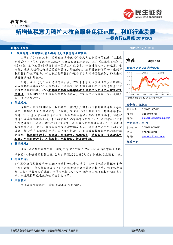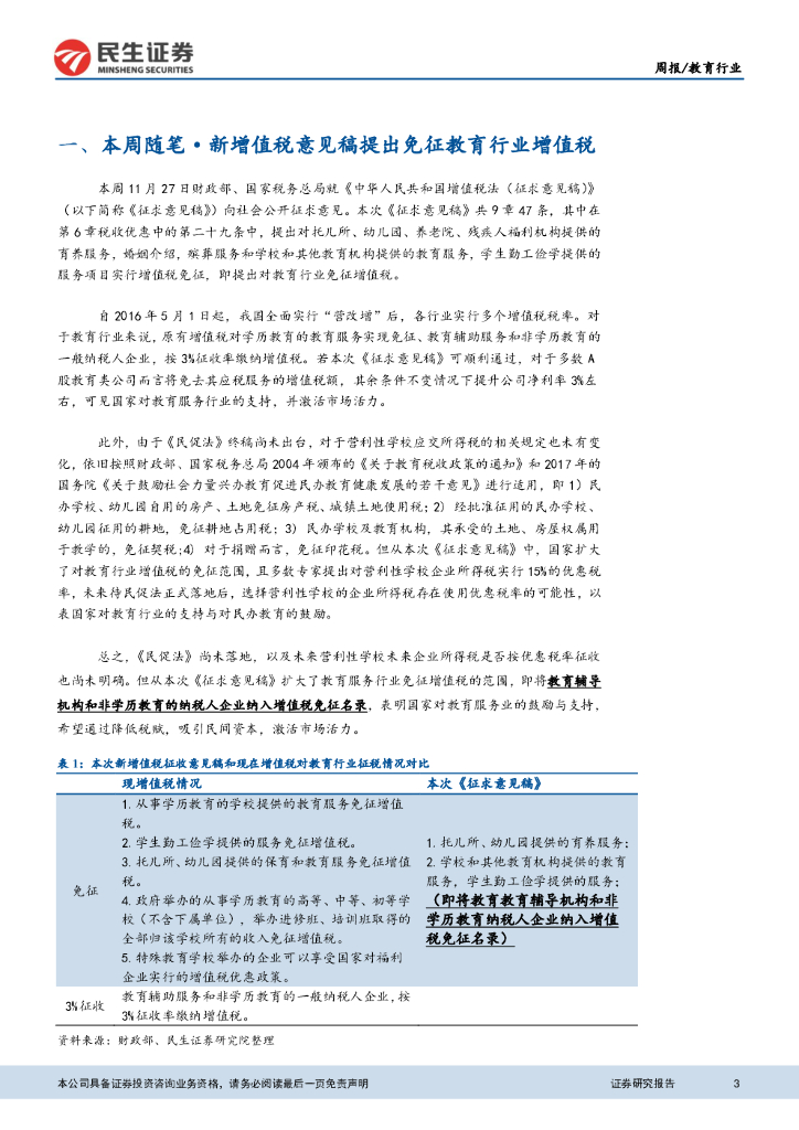 民生证券:教育行业周报:新增值税意见稿扩大教育服务免征范围,利好行业发展.pdf