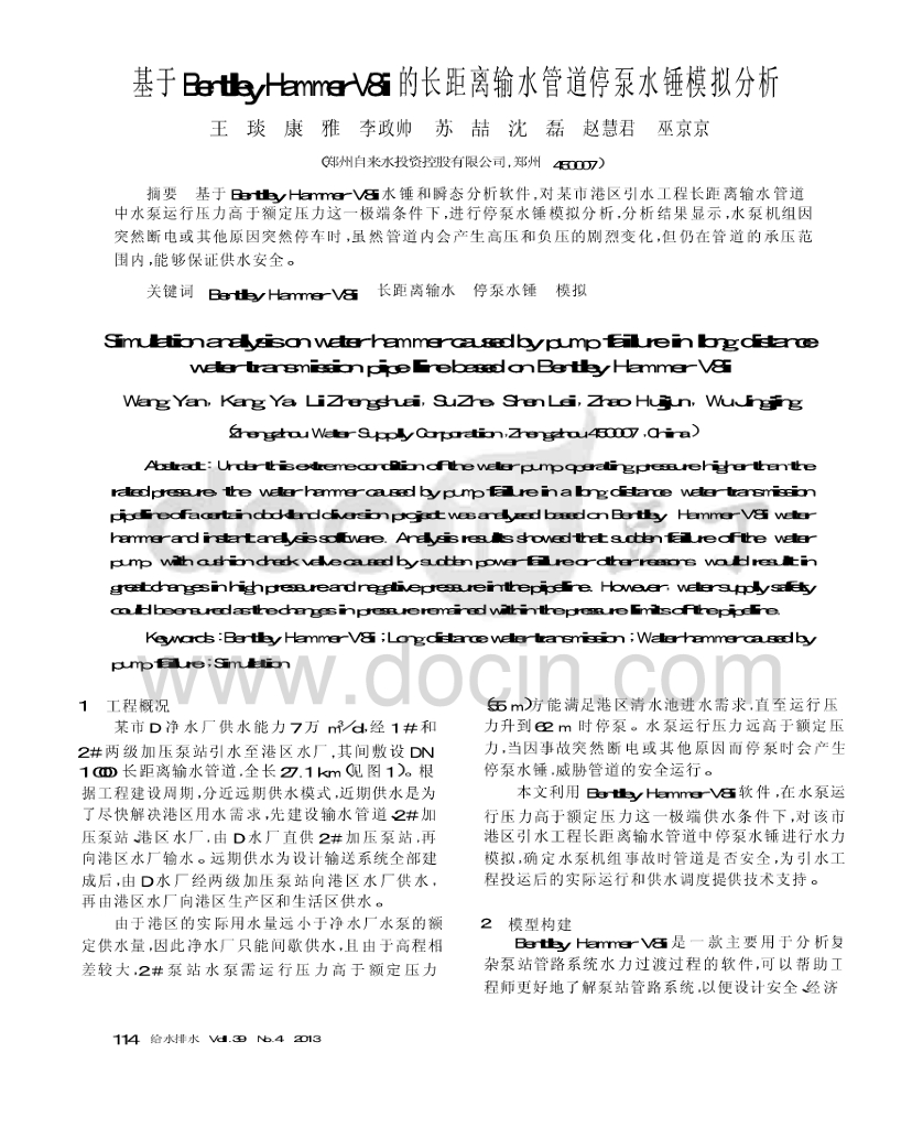 基于BentleyHammerV8i的长距离输水管道停泵水锤模拟分析.pdf