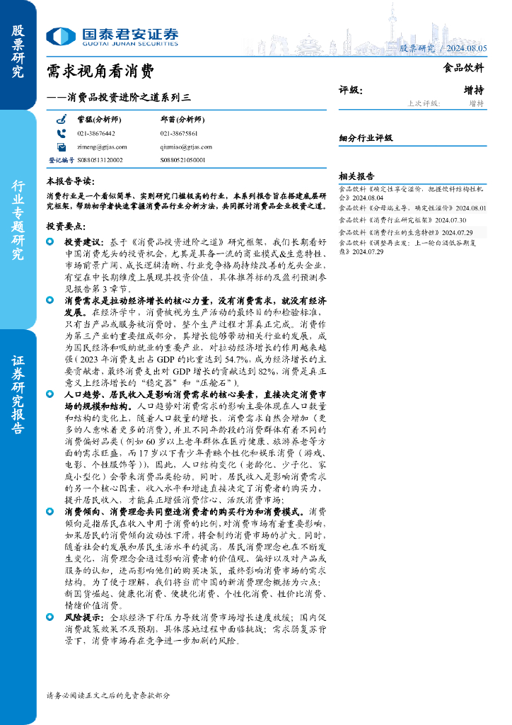 国泰君安:消费品投资进阶之道系列三:需求视角看消费.pdf