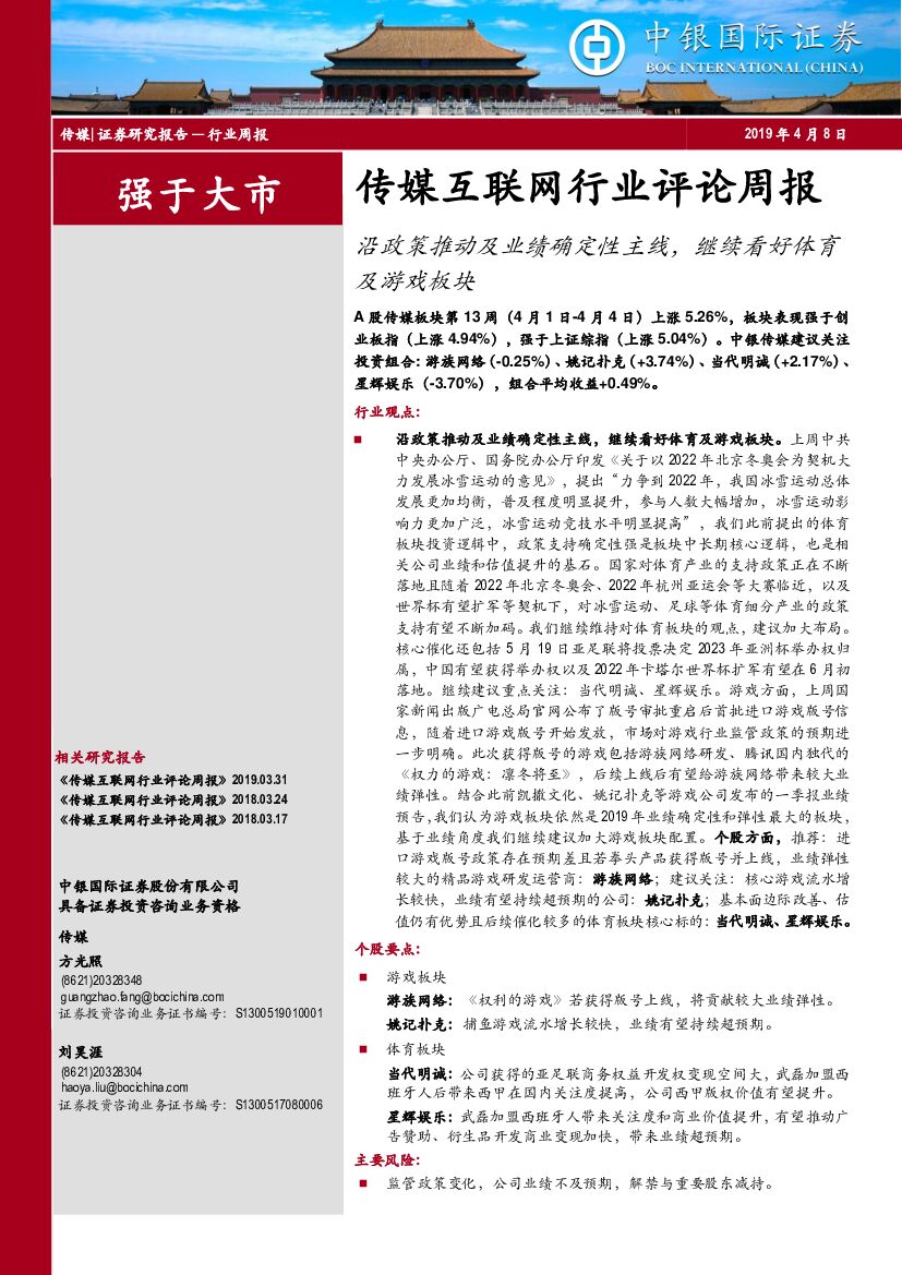 中银国际:传媒互联网行业评论周报:沿政策推动及业绩确定性主线,继续看好体育及游戏板块.pdf