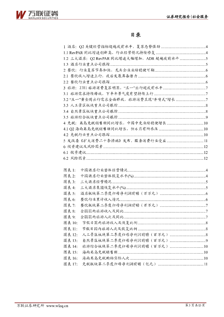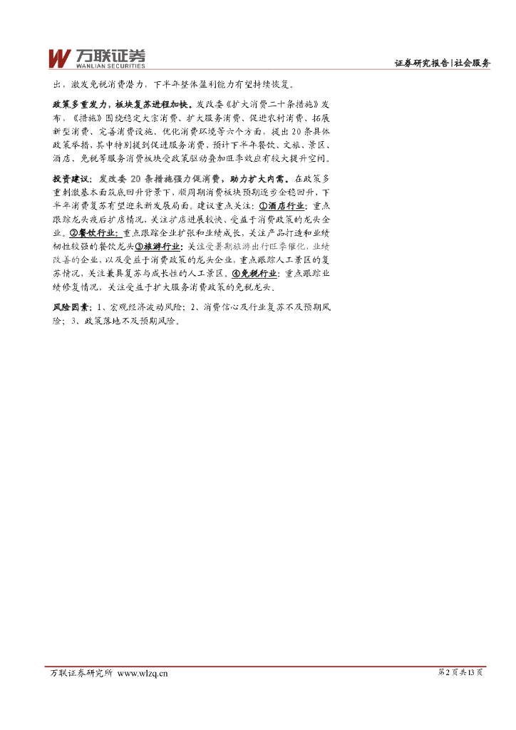 万联证券:社会服务行业2023年中报业绩前瞻:业绩向好,政策发力推动社服行业复苏延续.pdf