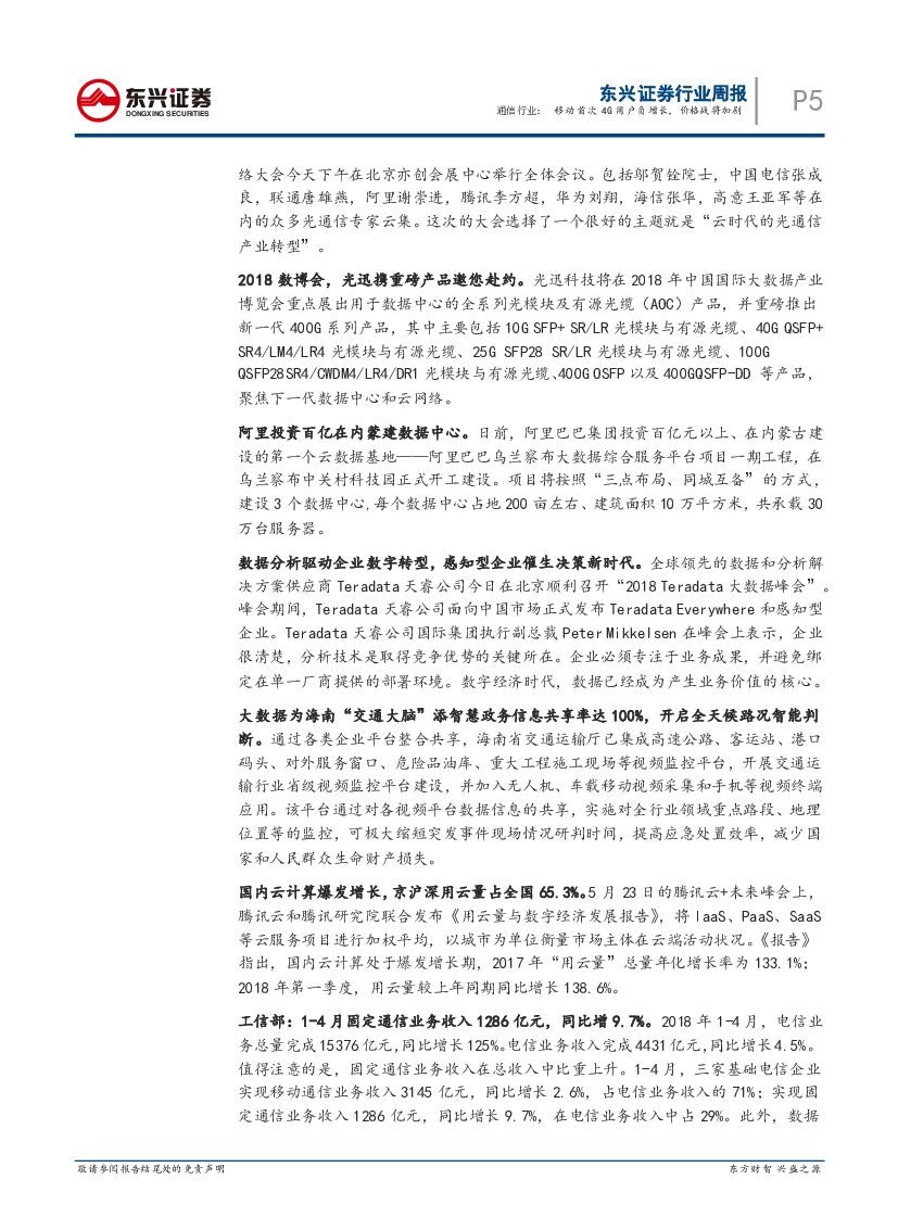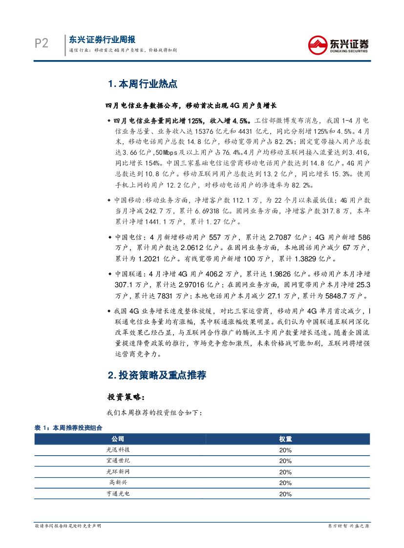东兴证券:通信行业周报:移动首次4G用户负增长,价格战将加剧.pdf