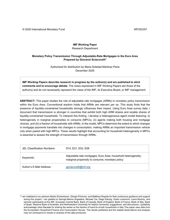 国际货币基金组织:欧元区可调利率抵押贷款的货币政策传导(英文版).pdf
