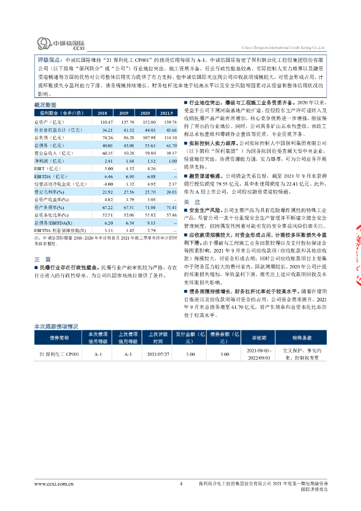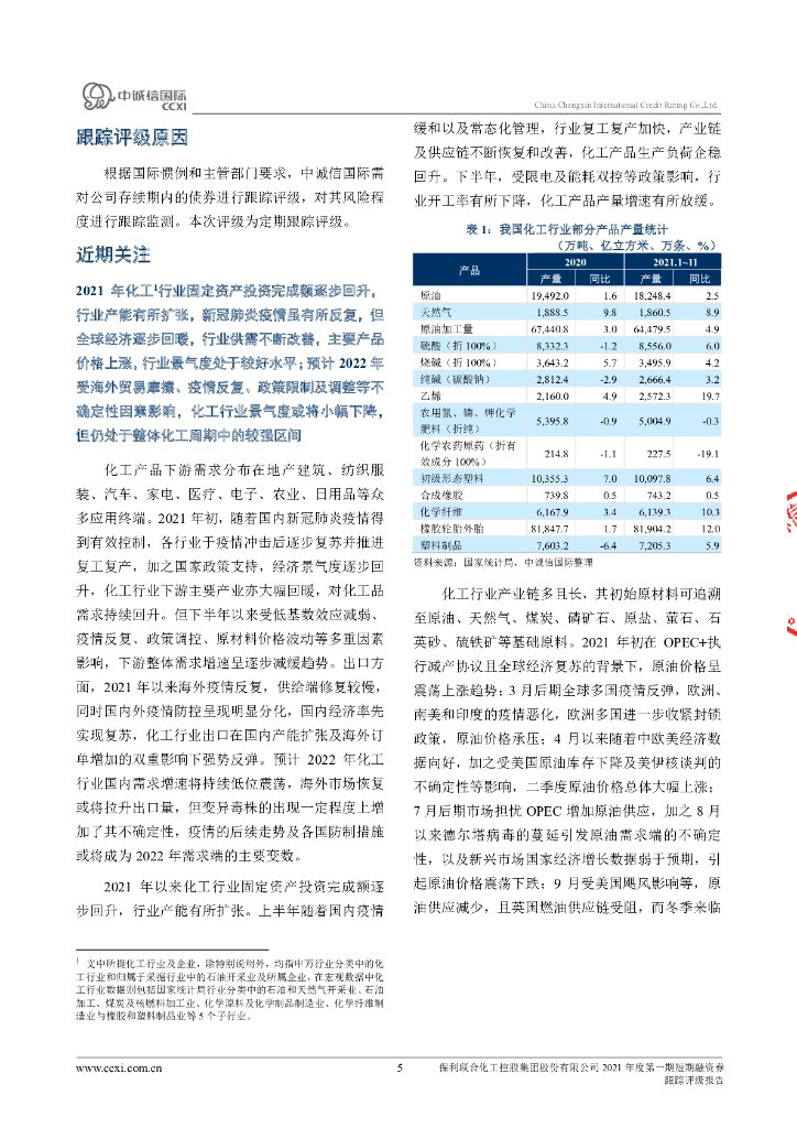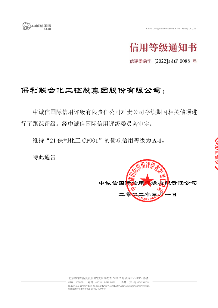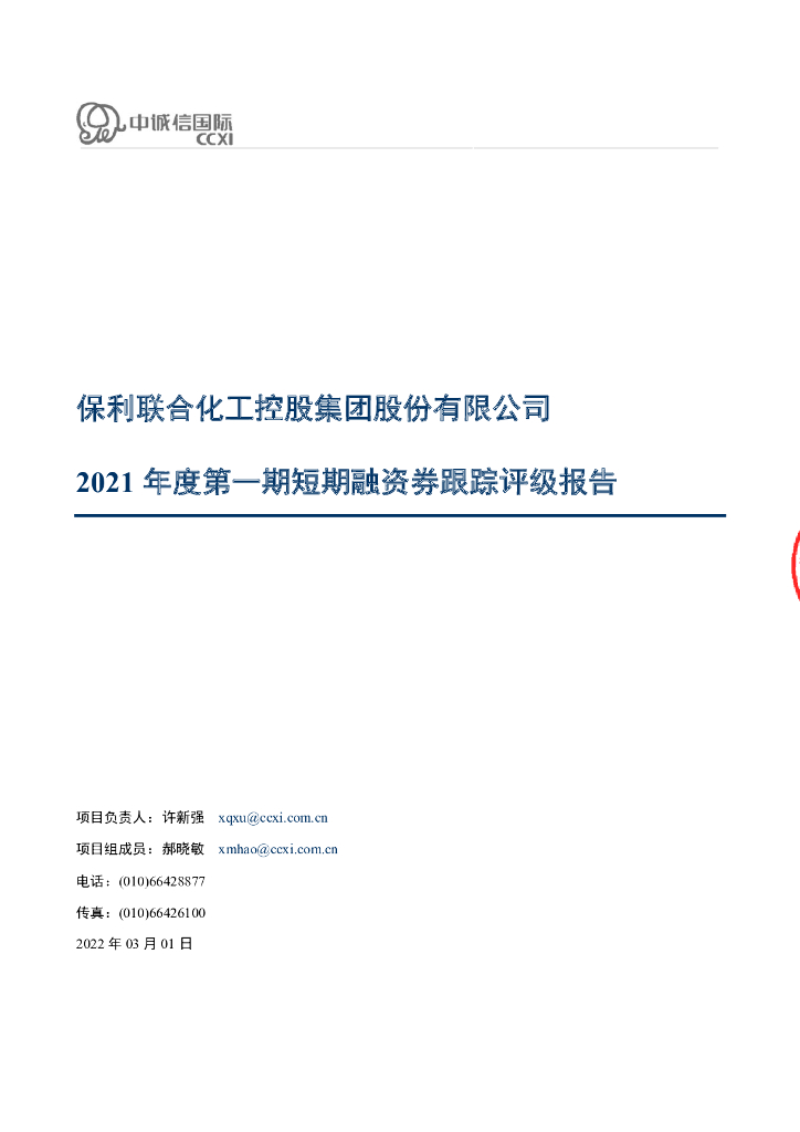 中诚信:保利联合化工控股集团股份有限公司2021年度第一期短期融资券跟踪评级报告.pdf