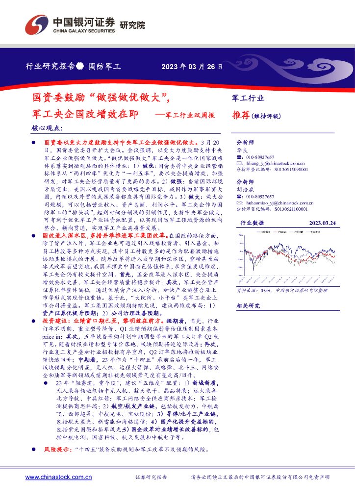 中国银河:军工行业双周报:国资委鼓励“做强做优做大”,军工央企国改增效在即.pdf