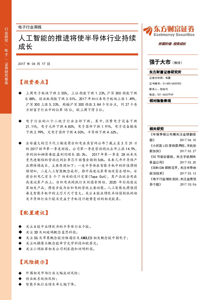 东方财富证券:电子行业周报:人工智能的推进将使半导体行业持续成长.pdf
