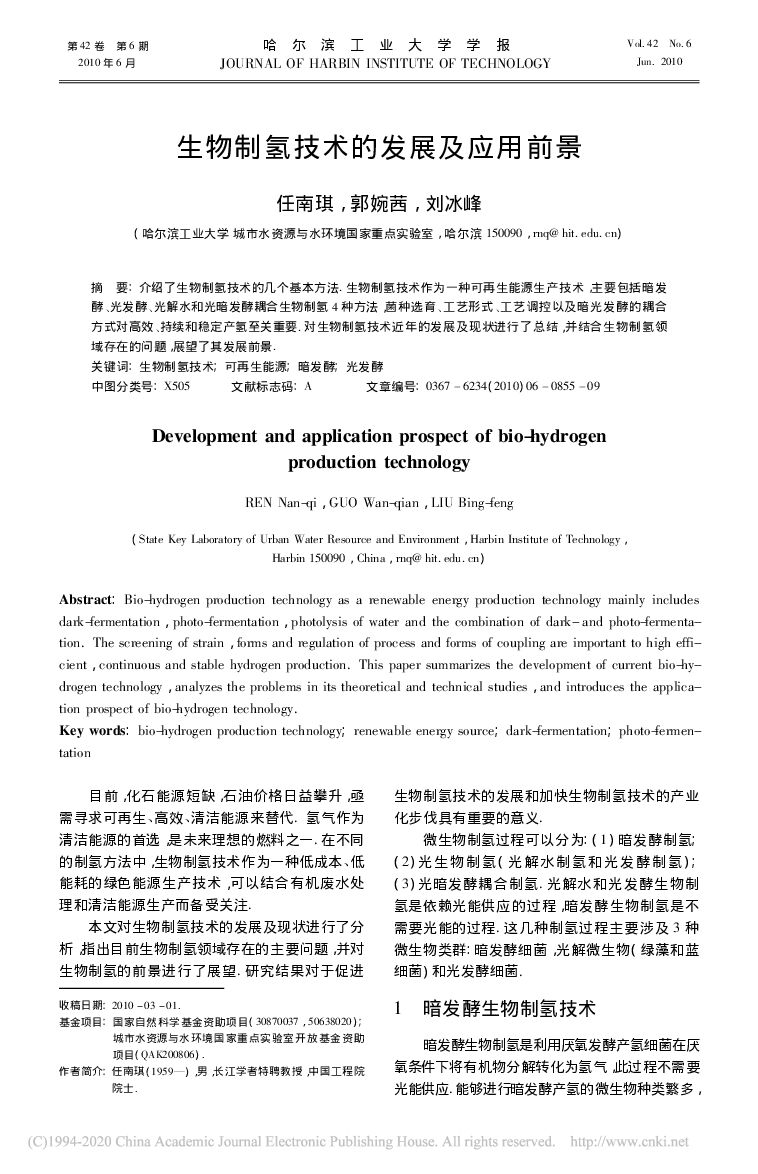 哈尔滨工业大学:生物制氢技术的发展及应用前景.pdf