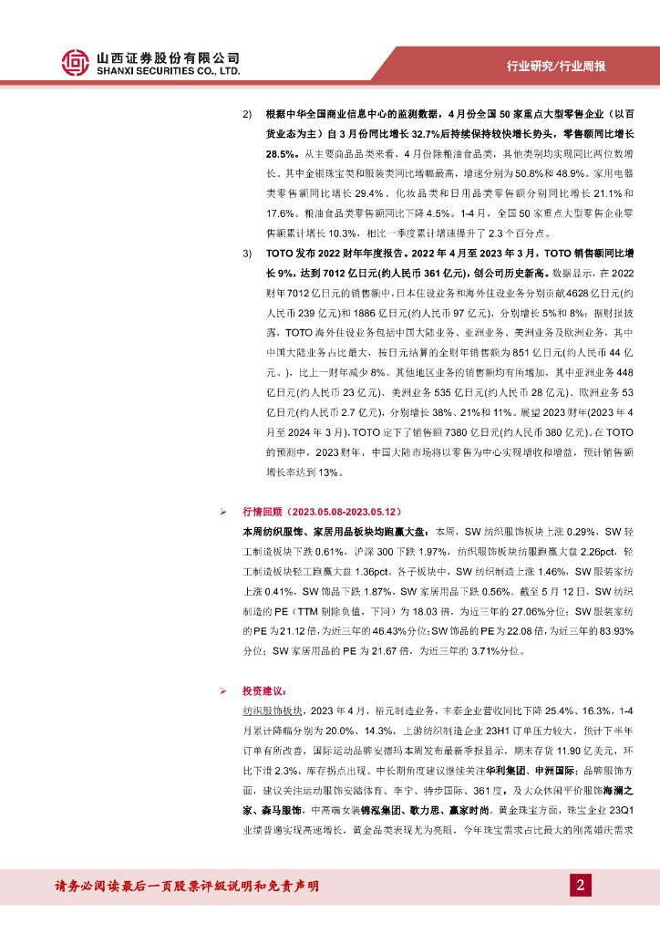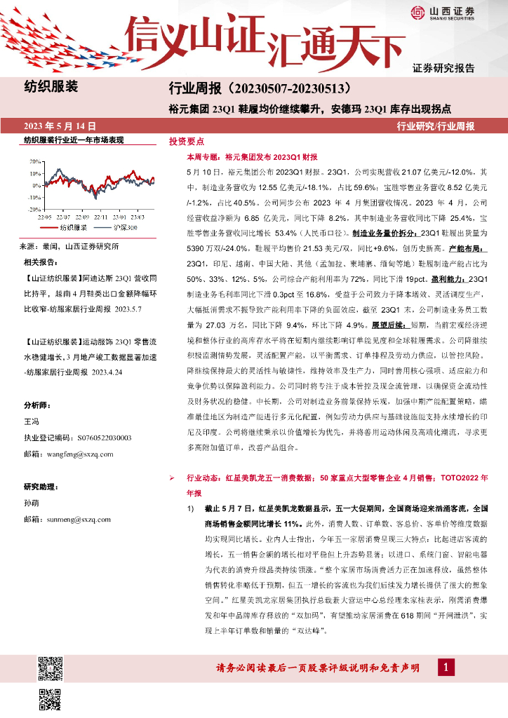 山西证券:纺织服装行业周报:裕元集团23Q1鞋履均价继续攀升,安德玛23Q1库存出现拐点.pdf