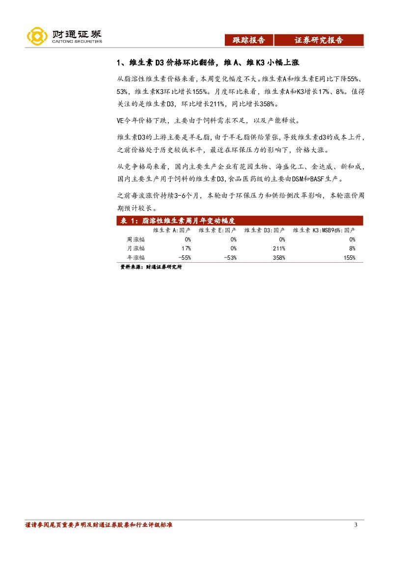财通证券:原料药行业跟踪报告:泛酸钙单周涨幅26%,VD3价格环比翻倍.pdf