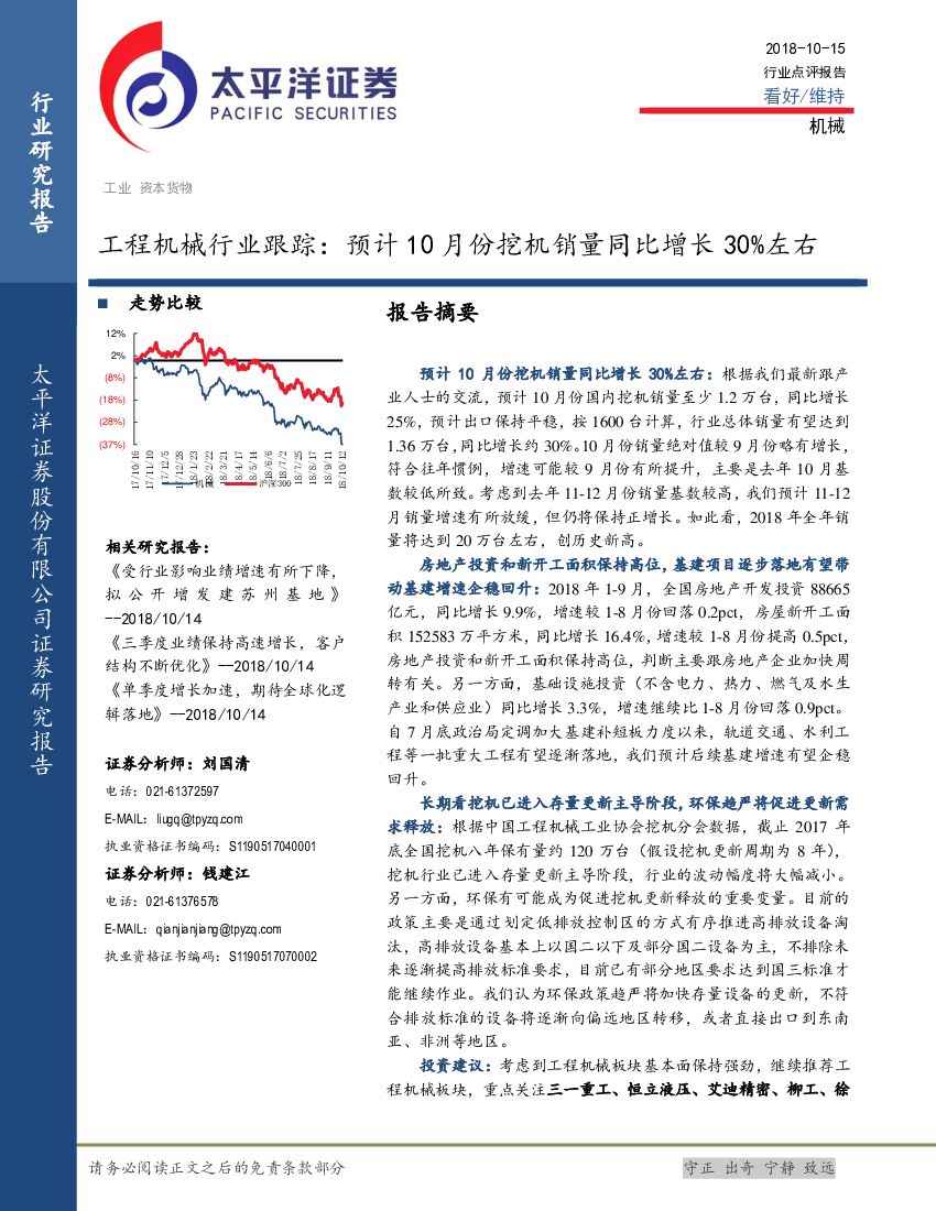 太平洋证券:工程机械行业跟踪:预计10月份挖机销量同比增长30%左右.pdf