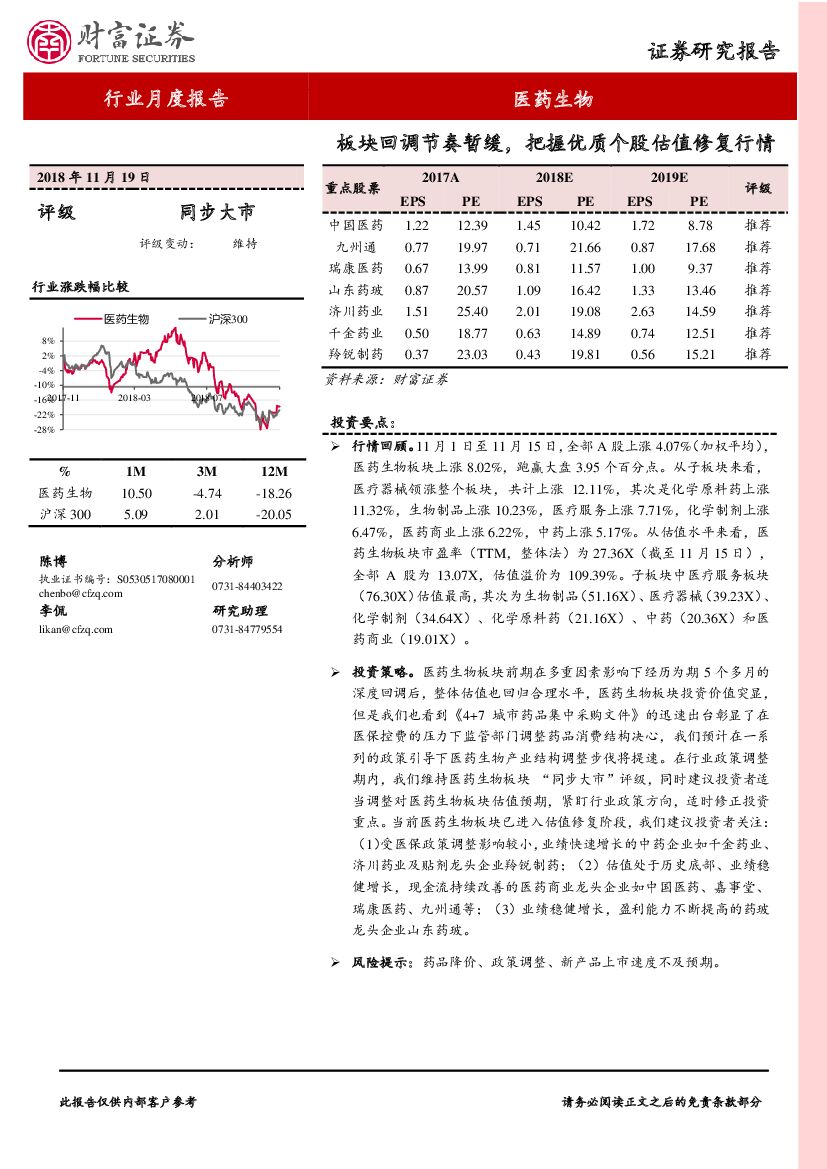 财富证券:医药生物行业月度报告:板块回调节奏暂缓,把握优质个股估值修复行情.pdf