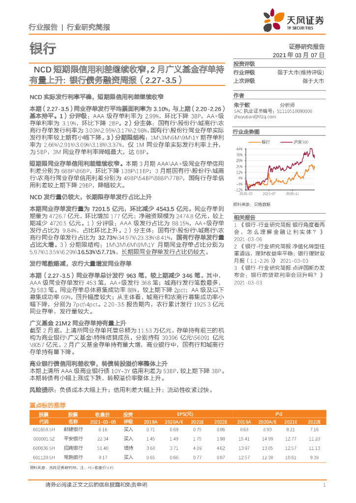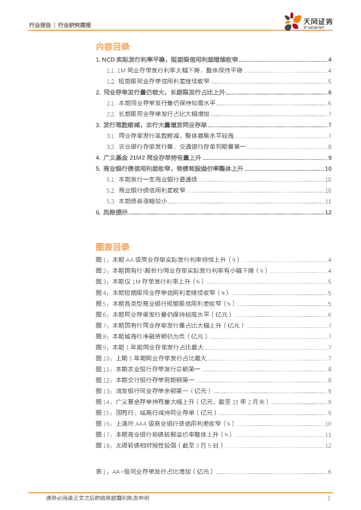 天风证券:银行业债务融资周报:NCD短期限信用利差继续收窄,2月广义基金存单持有量上升.pdf