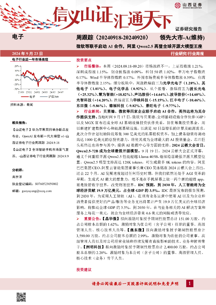 山西证券:电子周跟踪:微软等联手启动AI合作,阿里Qwen2.5再登全球开源大模型王座.pdf