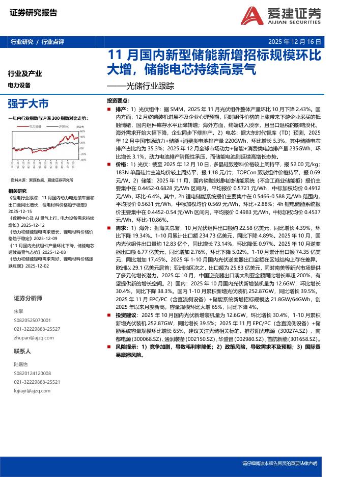 爱建证券:光储行业跟踪:11月国内新型储能新增招标规模环比大增,储能电芯持续高景气.pdf