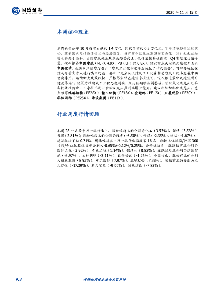 国盛证券:建筑装饰行业周报:政策督导装配式项目落地,继续推荐建筑央企与装配式龙头.pdf