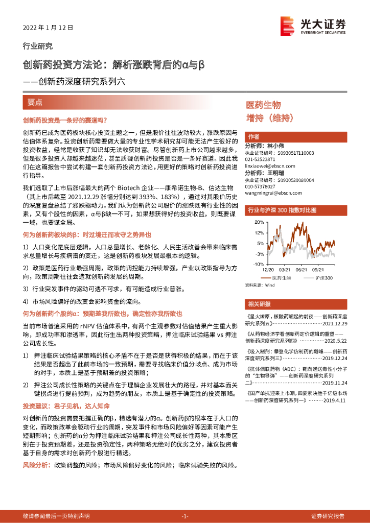 光大证券:创新药深度研究系列六:创新药投资方法论:解析涨跌背后的α与β.pdf