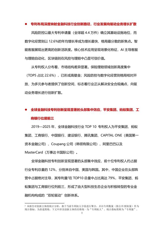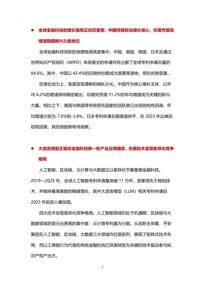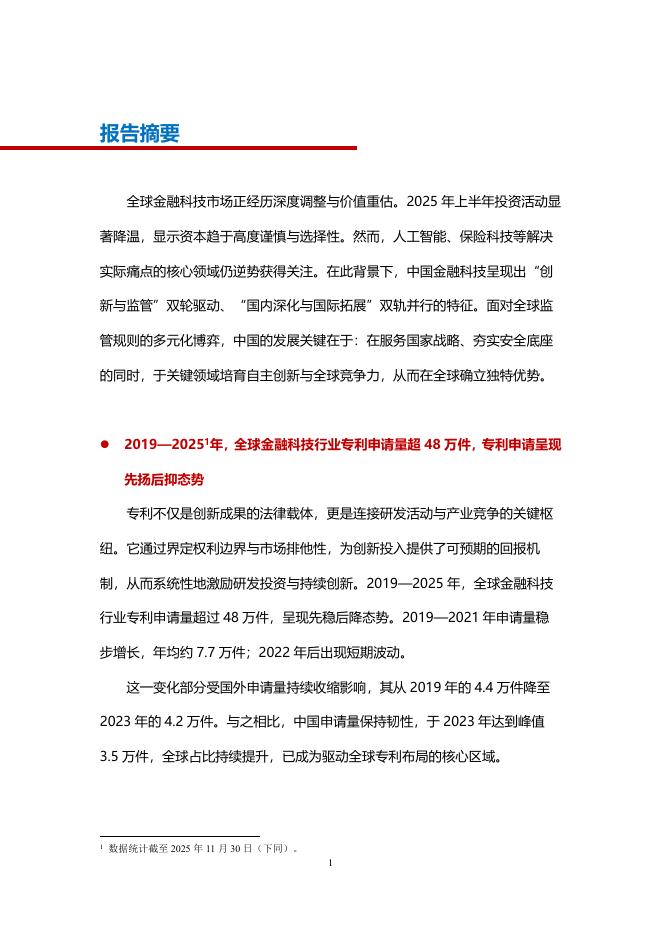 1、打开文档需要使用基本的办公软件,如Word、Office、WPS、Pdf、Cad、Rar、Zip等。 2、如遇下载失败、解压失败、文档缺失等问题,请通过【反馈】按钮提交。知识产权出版社:金融科技行业2025年专利分析白皮书.pdf