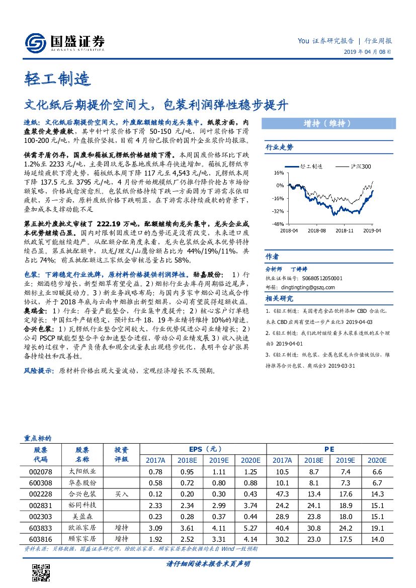国盛证券:轻工制造行业周报:文化纸后期提价空间大,包装利润弹性稳步提升.pdf