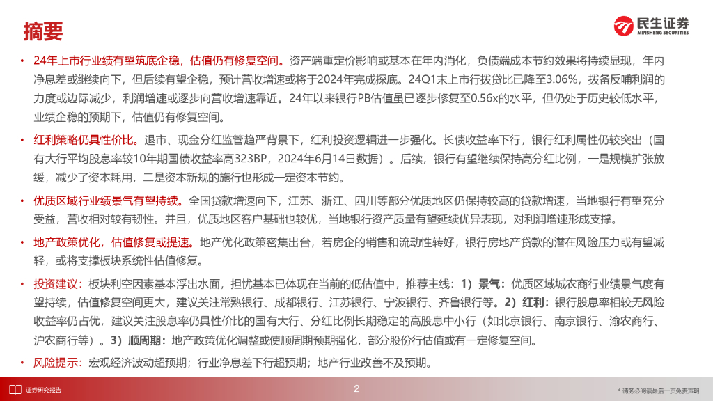 民生证券:银行业2024年中期投资策略:筑底之年,修复可期.pdf