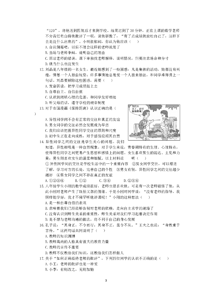 人教实验版八年级政治上册《第2单元 师友结伴同行(1)》检测题(含答案详解).doc