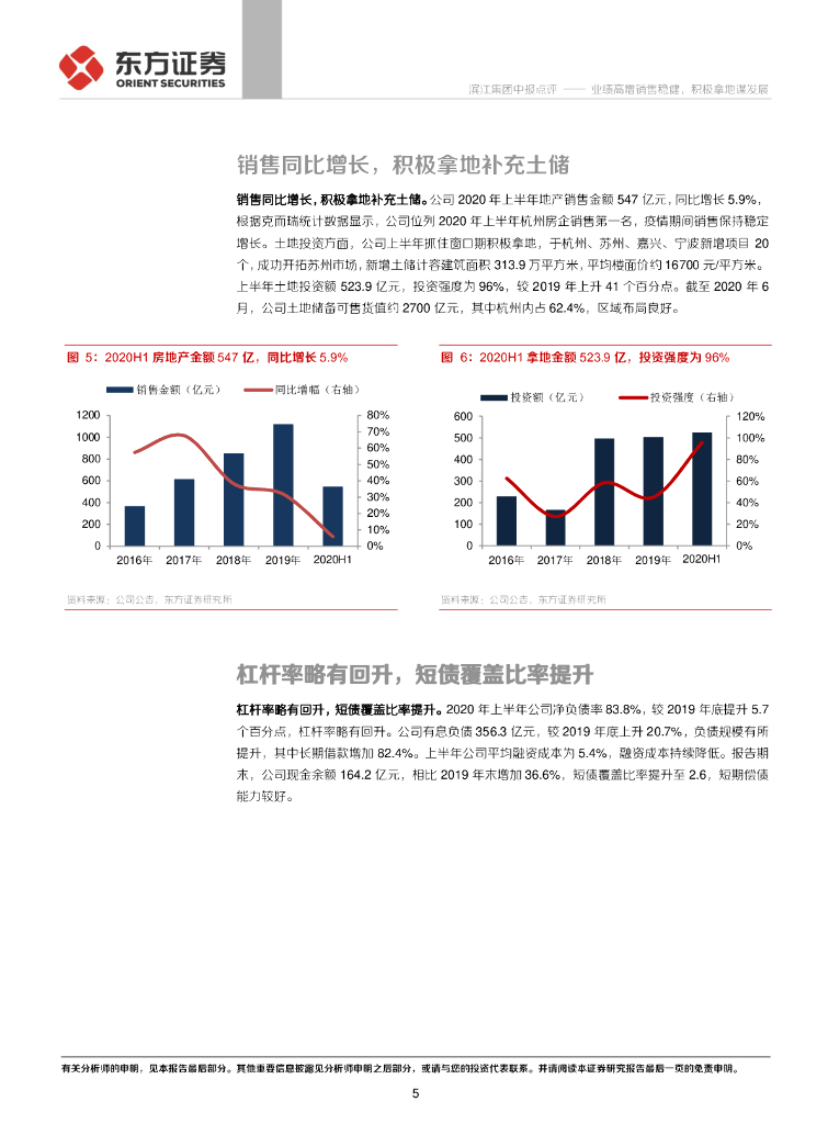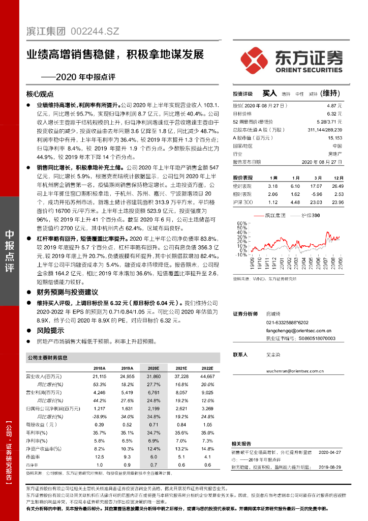 东方证券:滨江集团(002244)-2020年中报点评:业绩高增销售稳健,积极拿地谋发展.pdf
