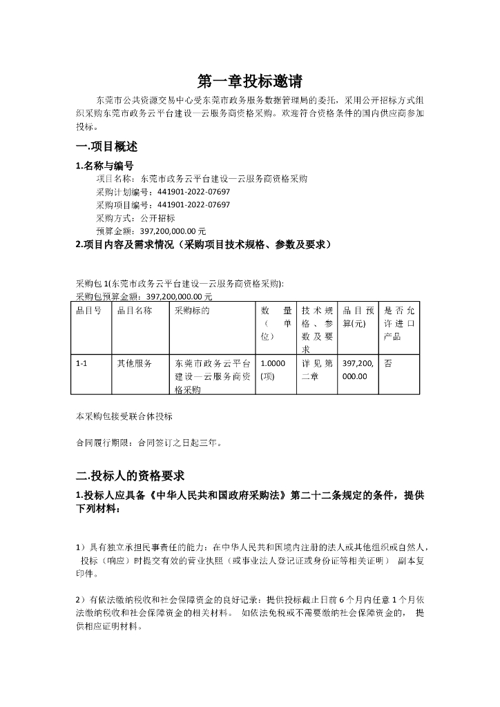 东莞市政务云平台建设—云服务商资格采购招标文件.doc