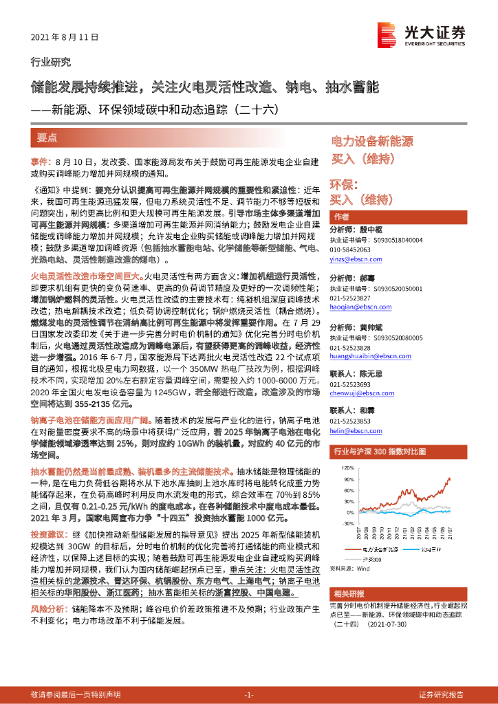 光大证券:新能源、环保领域碳中和动态追踪(二十六):储能发展持续推进,关注火电灵活性改造、钠电、抽水蓄能.pdf