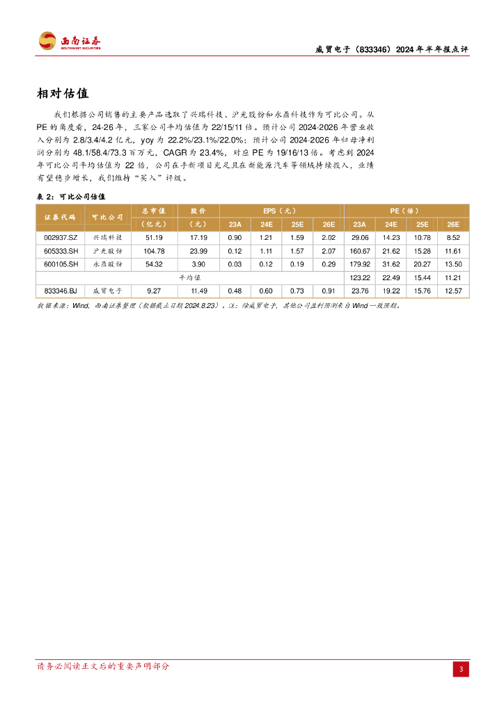 西南证券:威贸电子(833346)-2024年半年报点评:外销快速增长,新项目定点提供增长动能.pdf