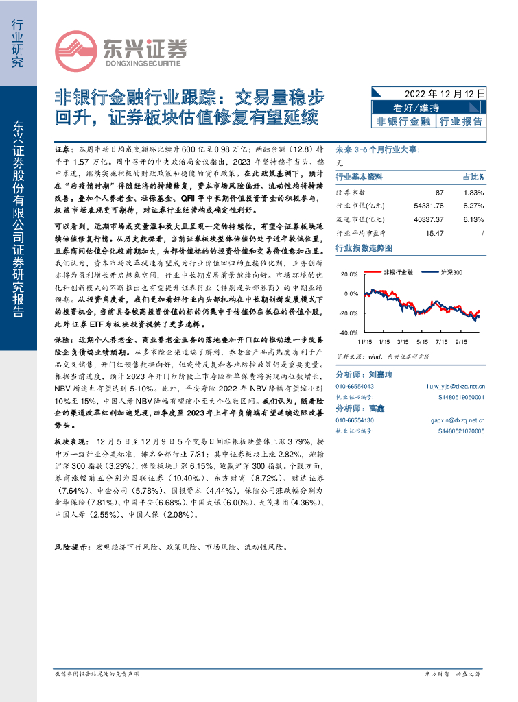 东兴证券:非银行金融行业跟踪:交易量稳步回升,证券板块估值修复有望延续.pdf