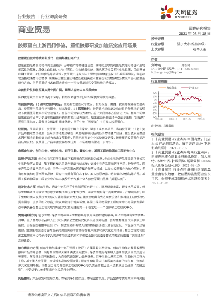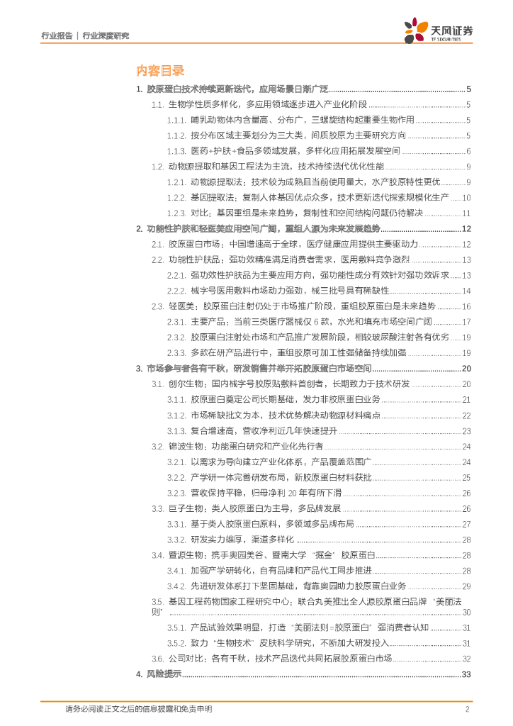 天风证券:商业贸易行业深度研究:胶原蛋白上游百舸争流,重组胶原研发加速拓宽应用场景.pdf