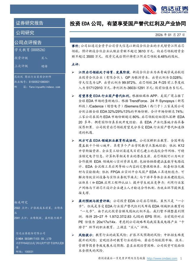 信达证券:学大教育(000526)-投资EDA公司,有望享受国产替代红利及产业协同.pdf