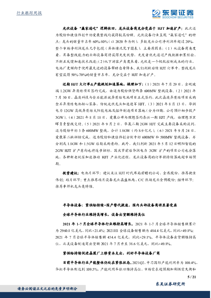 东吴证券:机械设备行业跟踪周报:持续看好受益于供需紧张的光伏半导体设备,建议关注基本面回暖的工程机械行业.pdf