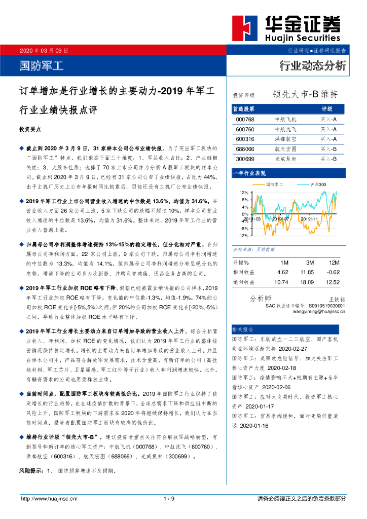 华金证券:2019年军工业绩快报点评:订单增加是行业增长的主要动力.pdf