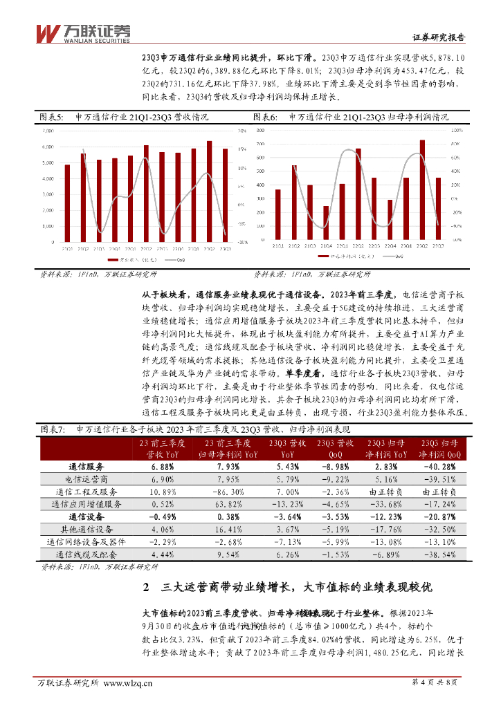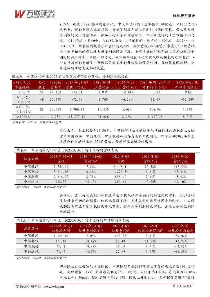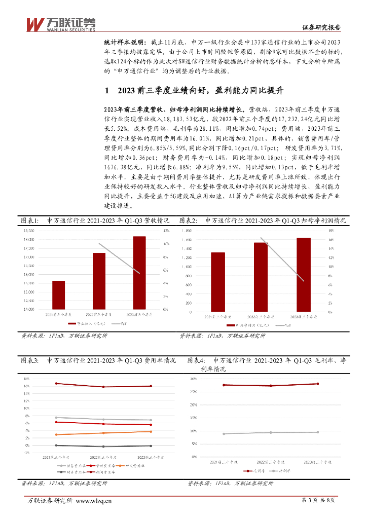 万联证券:通信行业跟踪报告:23年前三季度业绩向好,关注细分领域优质龙头企业.pdf