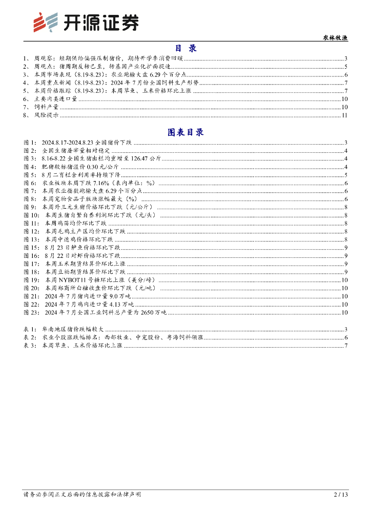 开源证券:农林牧渔行业周报:短期供给偏强压制猪价,期待开学季临近消费回暖.pdf