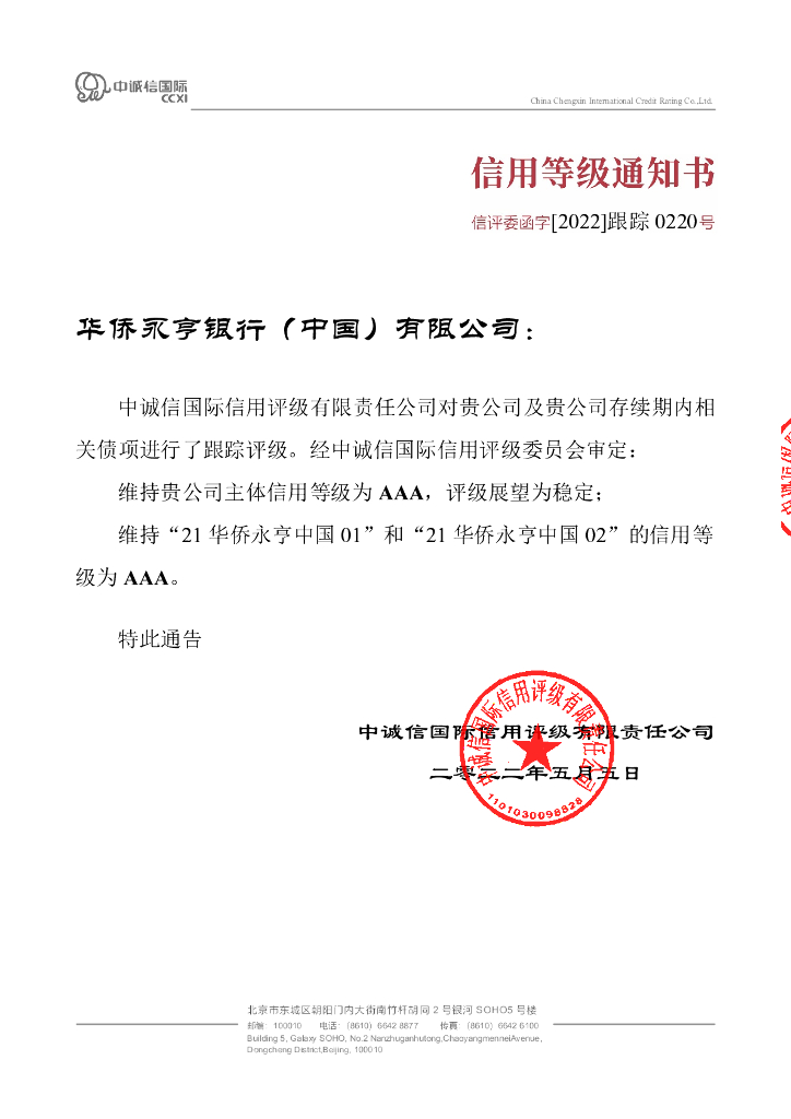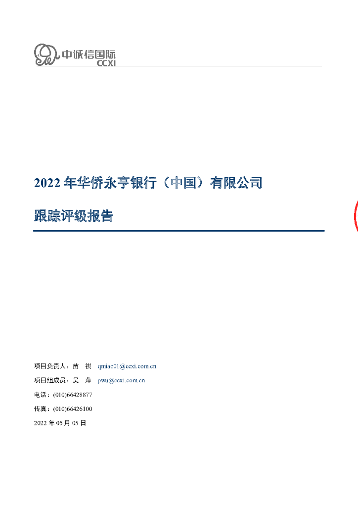 中诚信:2022年华侨永亨银行(中国)有限公司跟踪评级报告.pdf
