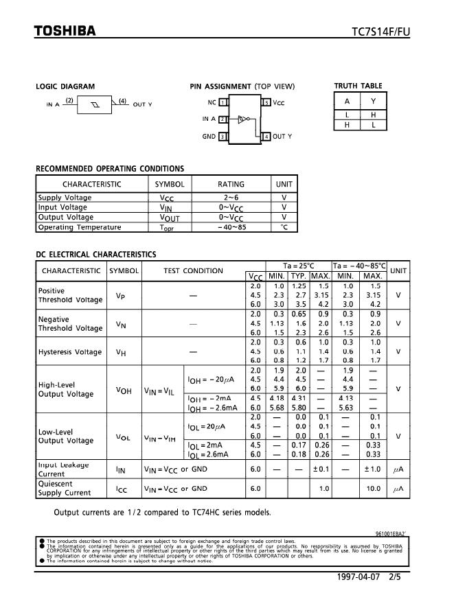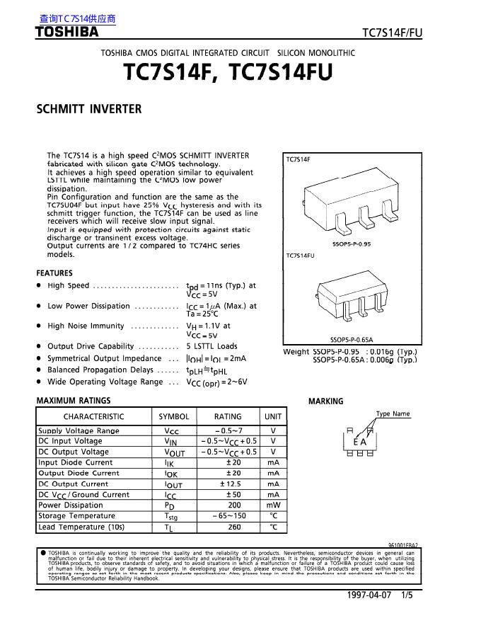 东芝 TC7S14F/TC7S14FU 数据手册.pdf