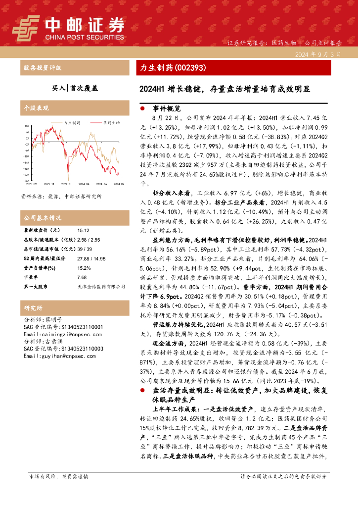 中邮证券:力生制药(002393)-2024H1增长稳健,存量盘活增量培育成效明显.pdf